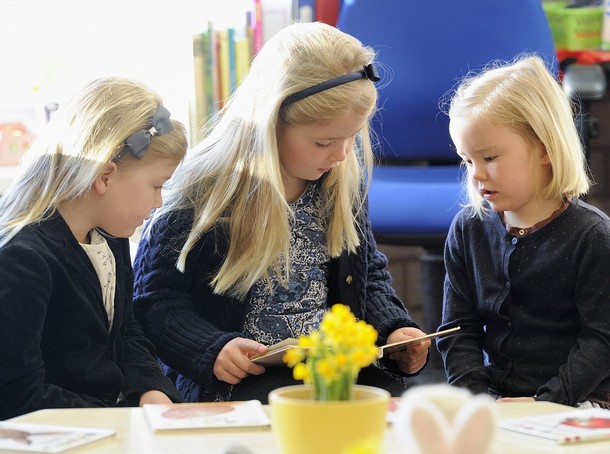 Dutch Princess Ariane (C) on her first school day at the Bloemcampschool in Wassenaar April 11, 2011.