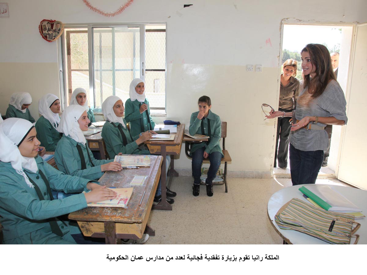Amman, September 15 (Petra) -- Her Majesty Queen Rania on Wednesday went on a surprise visit to inspect 3 public schools in Amman.