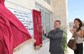 Jordan's King Abdullah II (R) and Queen Rania visit the Prince Al Hussein Bin Abdullah II Hospital