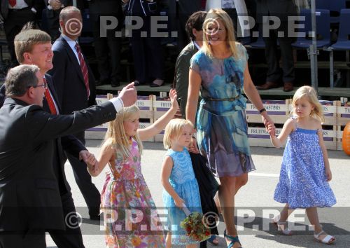 Princess Maxima and Prince Willem-Alexander with Princess Amalia and Princess Alexia and Princess Ariane at the 50th fruit parade in Tiel. 11/9/10