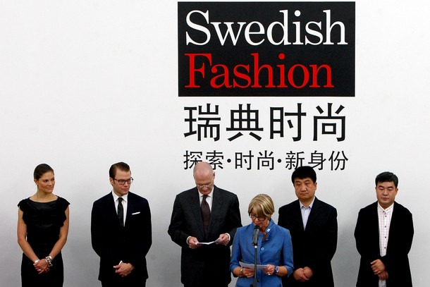 BEIJING - OCTOBER 11: HRH Crown princess Victoria of Sweden, HRH Prince Daniel of Sweden and Swedish ambassador Lars Freden attend the inauguration of 'Swedish Fashion-Exploring a new Identity' at the 798 Art Park on October 11, 2010 in Beijing, China.