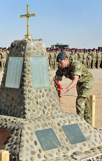 Britain's Prince William places a wreath on the memorial to the British Soliders killed in Afghanistan on November 14, 2010 during a remembrance day ceremony at Camp Bastion in southern Afghanistan. Prince William flew into Afghanistan on Sunday for a surprise visit to honour Britain's war dead, as the Queen led the nation in remembrance here in central London.