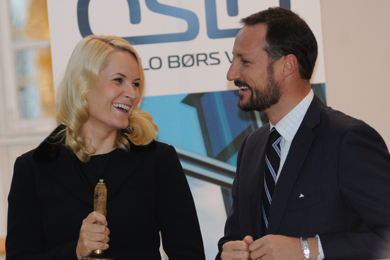 OSLO 2010-11-04. Crown Prince Haakon and Crown Princess Mette-Marit of Norway open the Oslo Stock Exchange.