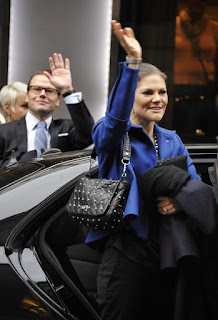 Sweden's Crown Princess Victoria and Prince Daniel wave as they depart from hotel Haven in Helsinki November 3, 2010 at the end of their official three-day visit.