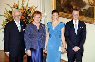 Sweden's Crown Princess Victoria (R) poses with Finland's President Tarja Halonen during a dinner reception at the presidential castle in Helsinki November 1, 2010.