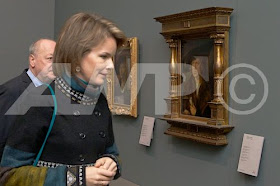 Princess Mathilde of Belgium (front) and mayor of Bruges Patrick Moenaert (back) pictured as they watch paintings, made by Albrecht Durer, during a visit to the exhibition 'Van Eyck to Durer" in the Groeningemuseum in Bruges, Friday 03 december 2010. The exhibition deals with the influence of the Flemish Primitives on the artists in the Holy Roman Empire.