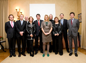 Princess Máxima received three winners of the 'G20 SME Finance Challenge"at Eikenhorst, December 15, 2010. They received the award during the G20 summit in Seoul for their innovative plans for financing SMEs in developing countries.