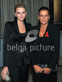 Princess Stephanie of Monaco (R), Fight Aids Monaco's president, and South African fiancee of Albert II of Monaco, Charlene Wittstock, attend the Fight Aids Monaco association annual charity auction sale at the Sea Club Meridien, to mark World AIDS Day in Monaco on 01 December 2010.