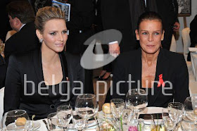 Princess Stephanie of Monaco (R), Fight Aids Monaco's president, and South African fiancee of Albert II of Monaco, Charlene Wittstock, attend the Fight Aids Monaco association annual charity auction sale at the Sea Club Meridien, to mark World AIDS Day in Monaco on 01 December 2010.