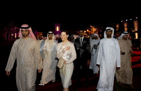 Swedish Crown Princess Victoria visit the horse farm of Sheikh Ammar bin Humaid al-Nuaimis, left, during her helicopter tour a round the United Arab Emirate on Wednesday January 19, 2011.
