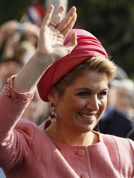 Dutch Princess Maxima waves farewell in the German-Dutch border town of Herzogenrath-Kerkrade April 15, 2011.