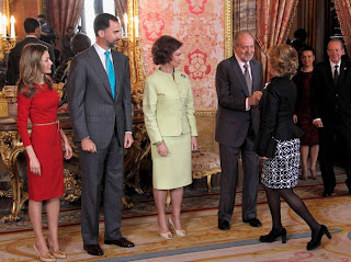 MADRID, SPAIN - APRIL 26: (L to R) Spanish Royals Princess Letizia, Prince Felipe, Queen Sofia and King Juan Carlos attend lunch in ocassion of the '2011 Cervantes Award' at the Royal Palace on April 26, 2011 in Madrid, Spain.