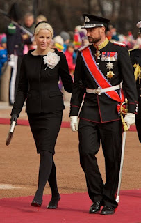 Princess Mette-Marit of Norway and Prince Haakon of Norway attend the official welcoming ceremony for Lithuania's president Dalia Grybauskaite at the Royal Palace during the first day of the Lithuanian state visit on April 5, 2011 in Oslo, Norway.