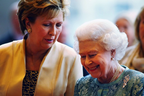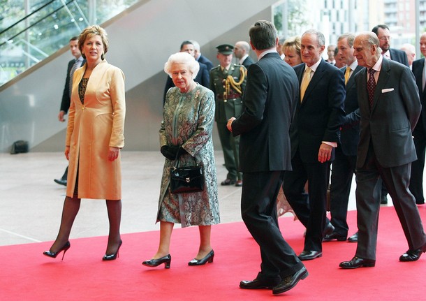 President Mary McAleese, Queen Elizabeth II, Dr Martin McAleese, Prince Philip, Duke of Edinburgh and British Ambassador Julian King at the Convention Centre on May 19, 2011 in Dublin, Ireland. The event held in the Convention Centre, attended by Queen Elizabeth II and Prince Philip, Duke of Edinburgh, will include a show of Irish Fashion, Music, Dance and Theatre.