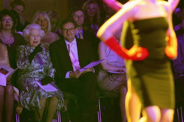 Britain's Queen Elizabeth (2nd L) attends a fashion show with Ireland's President Mary McAleese (L) at the Convention Centre in Dublin May 19, 2011.