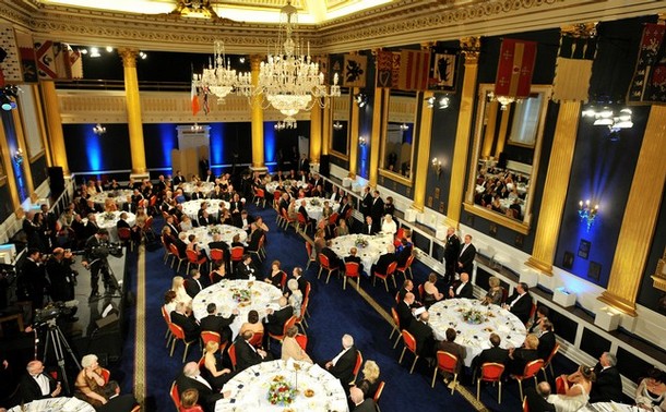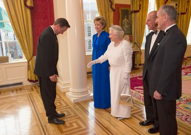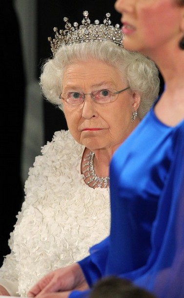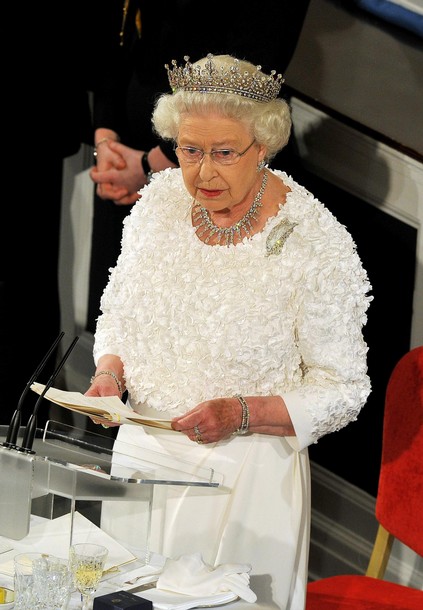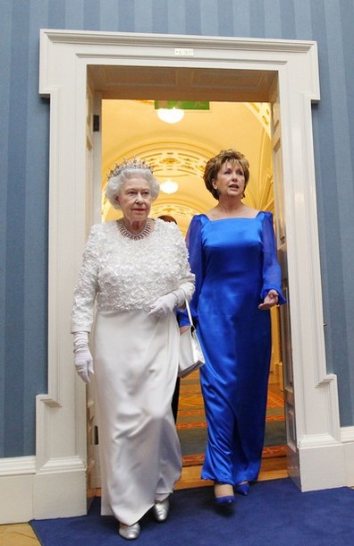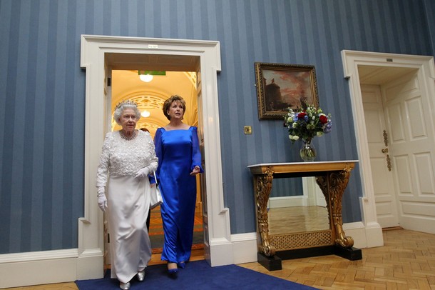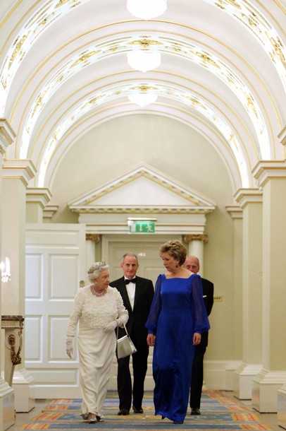 Britain's Queen Elizabeth gives her speech next to Ireland's President Mary McAleese (R) during the state dinner at Dublin Castle in Dublin May 18, 2011.