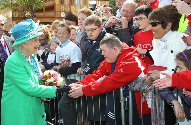 Britain's Queen Elizabeth waves to the public outside the English Market in Cork May 20, 2011.