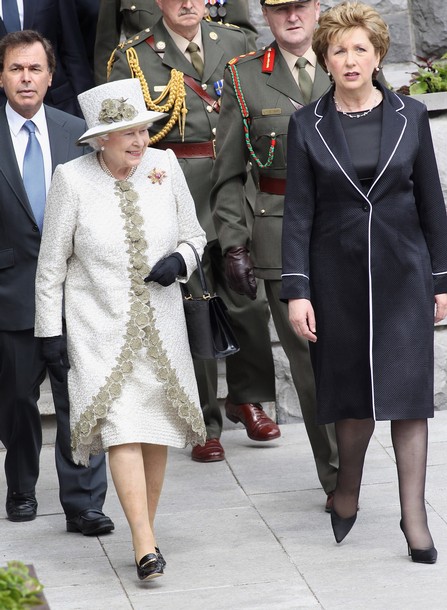 Irish President Mary McAleese and Queen Elizabeth II visit Dublin Memorial Garden on May 17, 2011 in Dublin, Ireland. The Duke and Queen's visit is the first by a monarch since 1911.