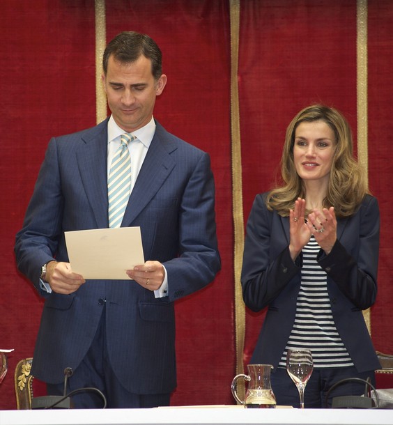 Prince Felipe of Spain and Princess Letizia of Spain (C) attend Caja Madrid foundation grants ceremony at San Fernando Museum on May 24, 2011 in Madrid, Spain.