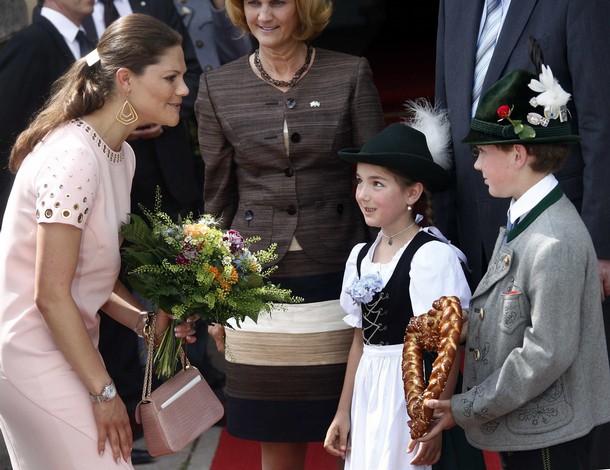 Sweden's Crown Princess Victoria (R) and her husband Prince Daniel, the Duke of Vastergotland, pose after their arrival at the Prinz Carl Palais in Munich May 24, 2011. The royal couple is on a visit to Germany with stops in Munich and Berlin.